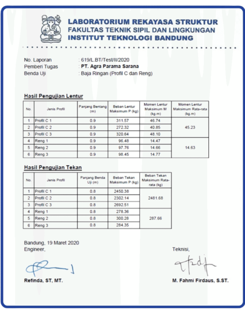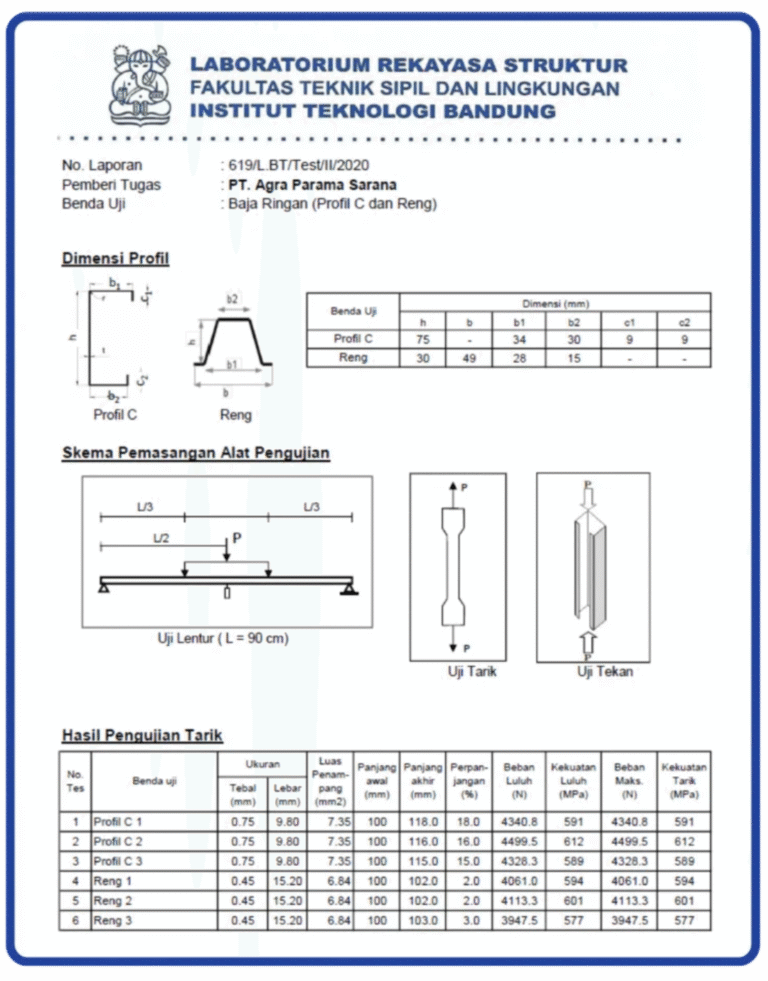 Hasil Tes pengujian baja ringan