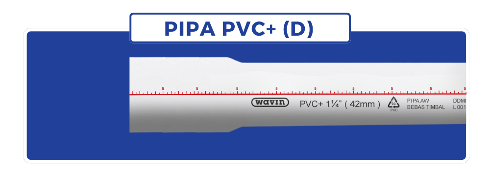 Pipa Wavin PVC+ sistem perpipaan plastik bertekanan untuk aplikasi air bersih, air buangan dan ari hujan senbagai distribusi air. Pipa Wavin sudah memiliki jaminan standar kualitas yang terpenuhi, dan memiliki sertifikasi dari institusi pemerintah, regulator baik dari internal manajemen maupun dari exsternal.
